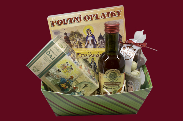 Dárkový balíček je zabalen do celofánové folie s mašlí.